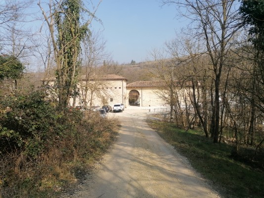 At the sign and indication "Trattoria Cà Verde" we enter the road for a few meters to turn left passing next to the houses.